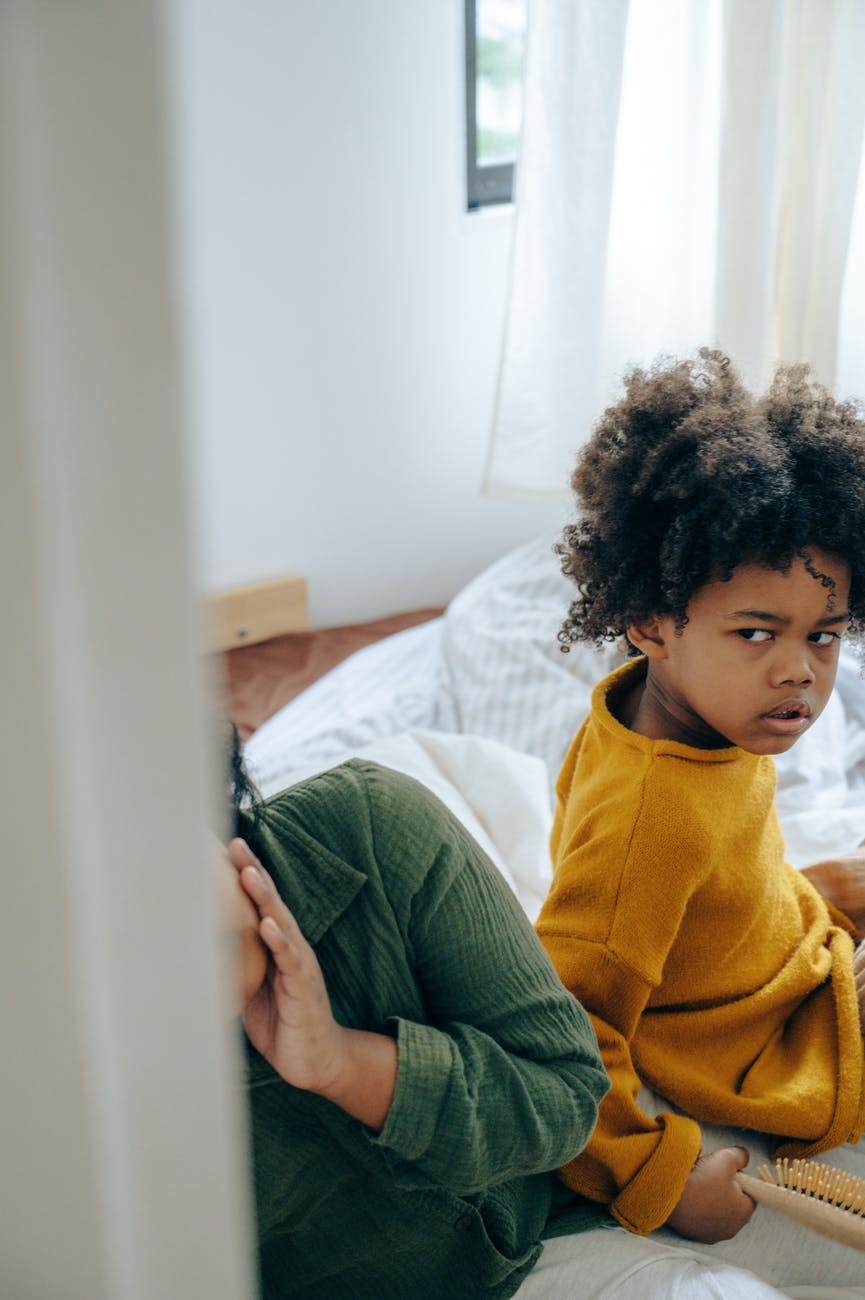 Previous Image Next Image offended little girl sitting on bed with sibling Photo by Ketut Subiyanto on Pexels.com